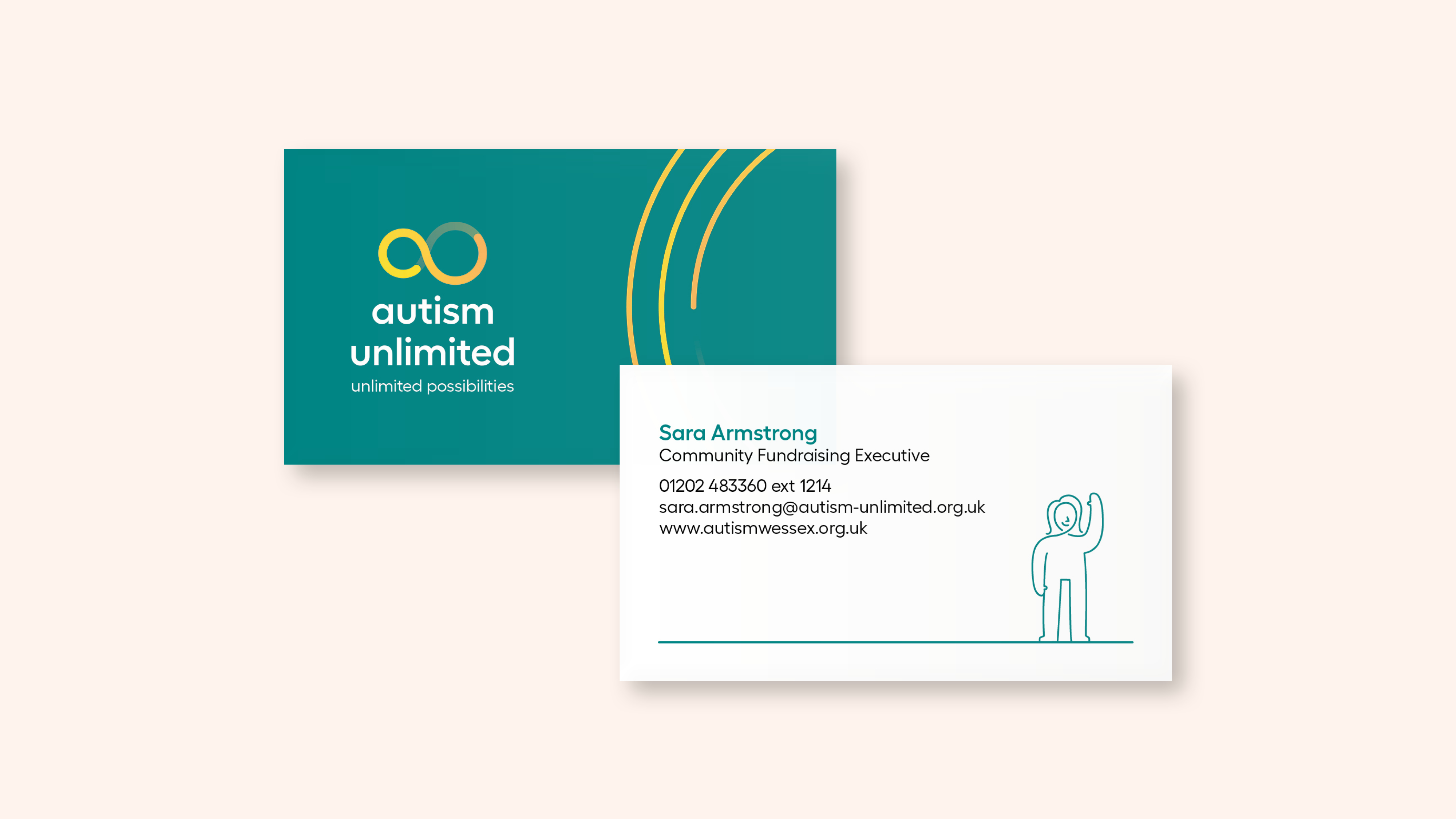 As well as using the existing logo and ‘infinity loop’ graphics, I illustrated a series of over 30 ‘Chums’ illustrations to be used across brand applications. These friendly people illustrations help to bring an uplifting personality to the brand and appeal to the children who attend Autism Unlimited schools and services.